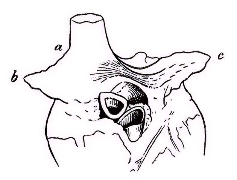 In 1916 Bachmann published a paper titled “The Inter-Auricular Time Interval” in the American Journal of Physiology. He measured activation times between the right and left atria and demonstrated that interruption of this distinct anterior interatrial muscular band resulted in delayed left atrial activation. He concluded that this band constituted the principal route for rapid interatrial conduction. The image, from his original publication, shows a dog’s heart with Bachmann’s bundle.