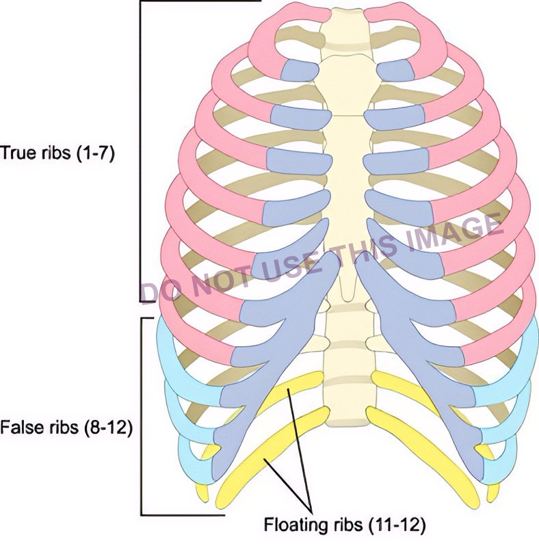 The next image by a reputable medical illustrator shows the groups of ribs, but there is a mistake: False ribs are only 8 – 10, not 8-12! Yet this image is being used for training. I do not know if this image was incorrectly labeled by a third party.